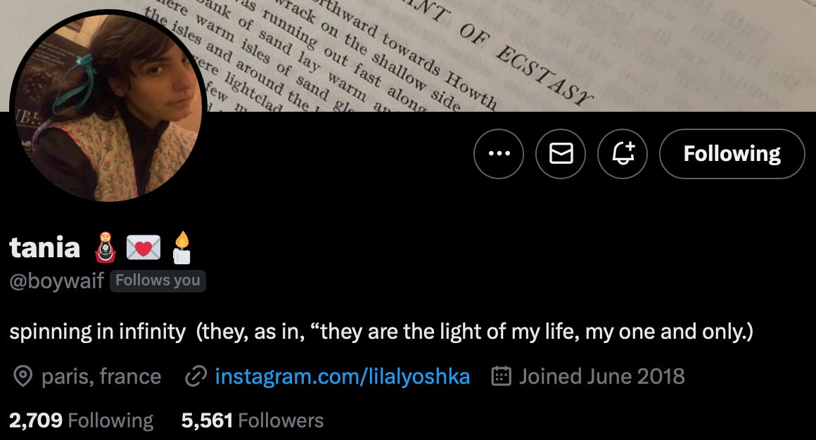 My friend Tania is a Twitter micro-celebrity and a great thinker on all things internet, oceans/islands, Édouard Glissant, and much much more. We talked about three of their more viral posts, what it feels like making hit tweets, and the aesthetic traditions that knit 2014 Tumblr, bookish communist Twitter, Ezra Pound, neo-reactionary aesthetes, and TikTok screenshot quote posts together.
